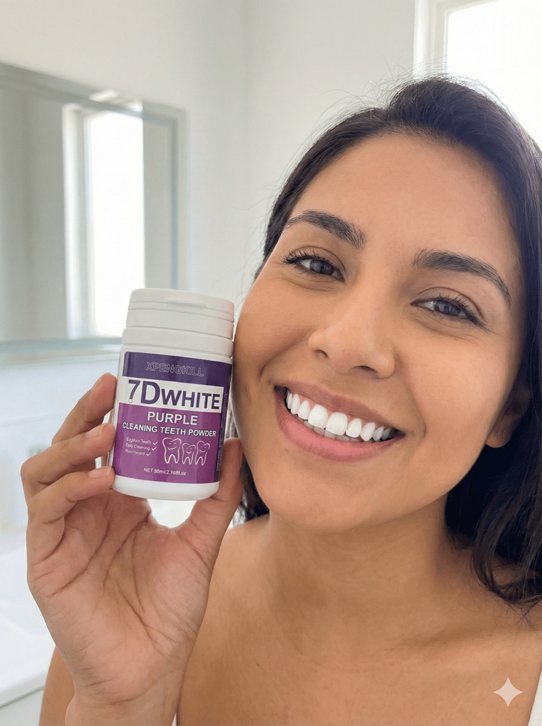 El 7D White™ no es una pasta dental común. Es un tratamiento de Corrección de Color. Sus pigmentos violetas profundos envuelven tus dientes y "cancelan" los subtonos amarillos causados por el café, el vino o el cigarrillo.